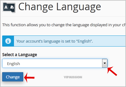 3. From the cPanel Language Configuration Page, chose your language from the dropdown menu and then click on the "Change" button.