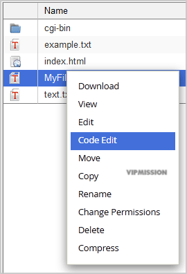 5. Right click on the file and then on "Edit" or "Code Edit" in the Context Menu.