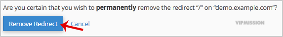 4. For confirmation click on the "Remove Redirect" button once more.