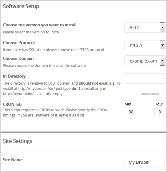 • Admin Username: Your new Drupal username (for security reason do not use the "Administrator" or the "Admin" username.