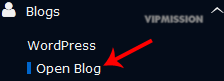 5. On the left side of your screen you should locate the "Blogs" category. Click on it and then click on the "OpenBlog" link that will appear.