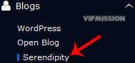 5. On the left side of your screen you should locate the "Blogs" category. Click on it and then click on the "Serendipity" link that will appear.