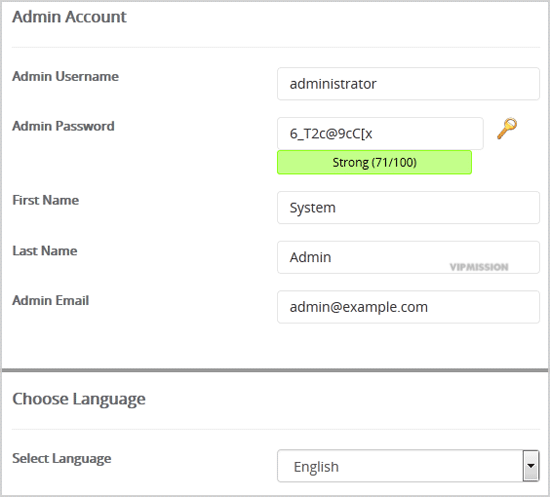- Admin Username: Your new Dotclear username (for security reason do not use the "Administrator" or the "Admin" username.)