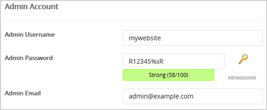 - Admin Username: Your new b2evolution username (for security reason do not use the "Administrator" or the "Admin" username.)