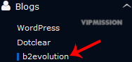 5. On the left side of your screen you should locate the "Blogs" category. Click on it and then click on the "b2evolution" link that will appear.