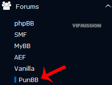 5. On the left side of your screen you should locate the "Forums" category. Click on it and then click on the "PunBB" link that will appear.
