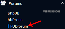 5. On the left side of your screen you should locate the "Forums" category. Click on it and then click on the "FUDforum" link that will appear.