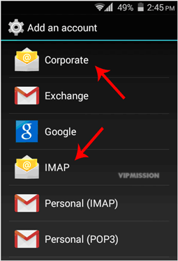 2. Now tap on the "Corporate" or the "IMAP" email icon. Both are the same.