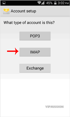 4. You will get 3 options and you just need to tap on the "IMAP" option.