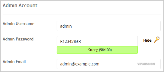 - Admin Username: Your new sNews username (for security reason do not use the "Administrator" or the "Admin" username.)