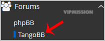 4. On the left side of your screen you should locate the "Forums" category. Click on it and then click on the "TangoBB" link that will appear.