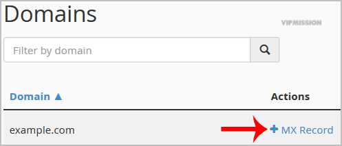 Under "Domains", you can see many options below the "Actions" text.